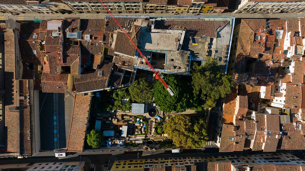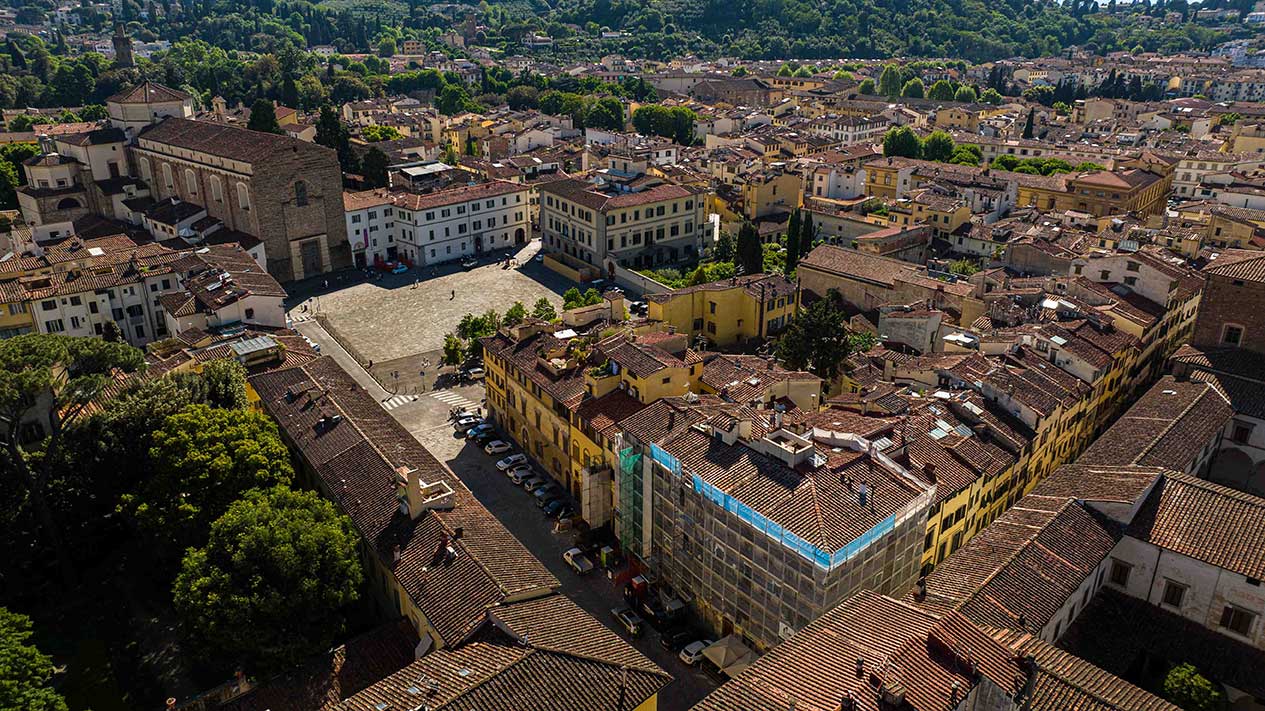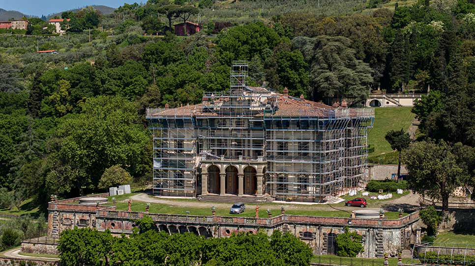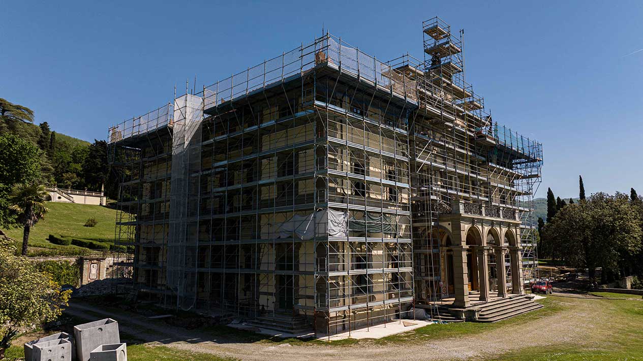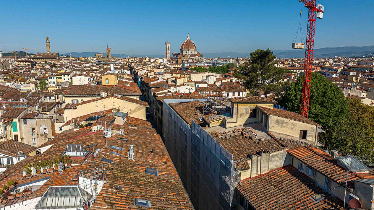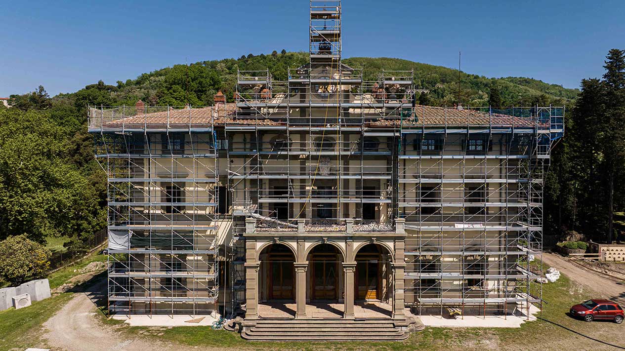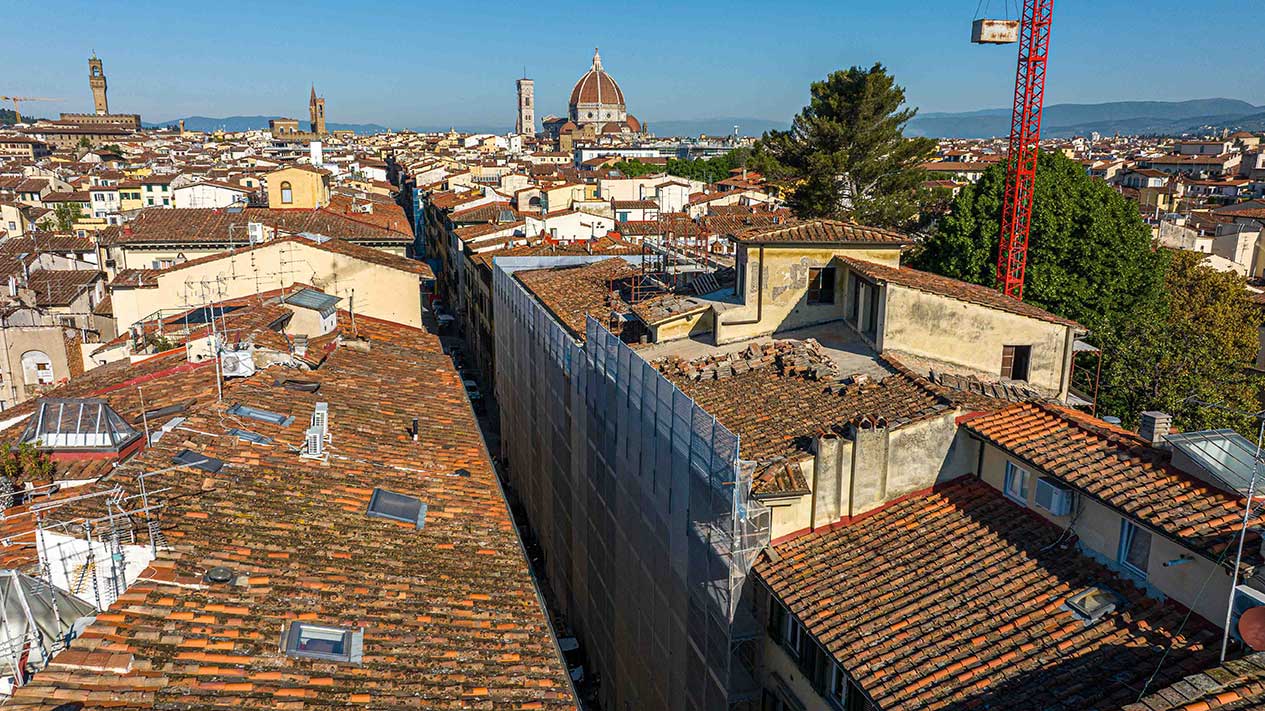 Ponteggi completi per intervento di ristrutturazione delle facciate di un palazzo storico fiorentino.